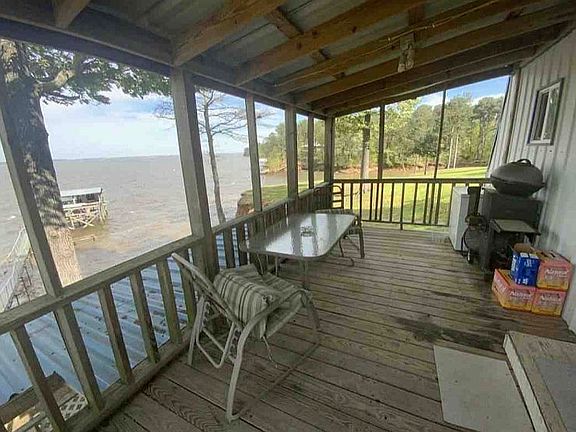 A well-kept home on beautiful Toledo Bend Lake. It has amazing views from the side deck and double back porches. It is located on the famous "Chicken Coop" where you can fish it directly off of the boathouse walkway. Downstairs is a bedroom, bathroom, kitchen, dining area, space for washer and dryer, and living room. Upstairs is another bedroom, bathroom and a large bonus area for multiple beds, bunkbeds, and reading area. There is another enclosed metal building that can be used as a garage or shed. It also has a nice hard bottom "beach type" swimming area for kids. NO LEASE PURCHASE OR RENTAL AVAILABLE