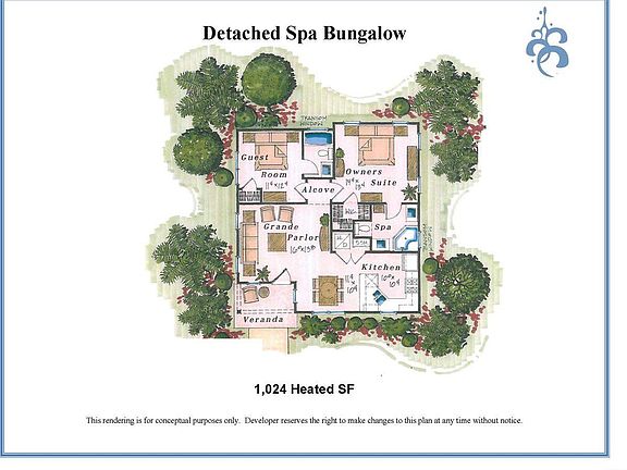 Furnished detached Spa Villa bungalow with 2 bedrooms/2 baths with front veranda. North Beach Plantation offers a 2.5-acre pool area with lazy river and indoor pool, world-class Cinzia Spa, state-of-the-art Beach Fit fitness center and on-site restaurants just across from Barefoot Landing.