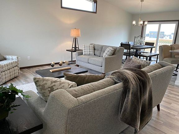 This property is located in the Sunrise Development. 1308 sq ft finished with 2 bedrooms including the master with walk in closet & master bath that has a 5' walk in shower & duel sinks. This is an open plan with vaulted ceilings over the living room, dining & kitchen. The kitchen has a white island and dark stained cabinets with QUARTZ COUNTER TOPS, upgraded Whirlpool appliances are black stainless steel. Laundry room is also on the main with access from the garage. There is a 805 sq ft, 3 stall garage with hot & cold water, drain & is roughed in for heat. DECK INCLUDED & NO SPECIALS!