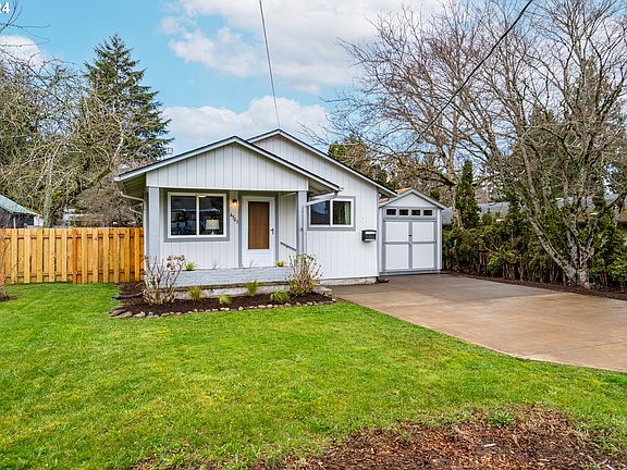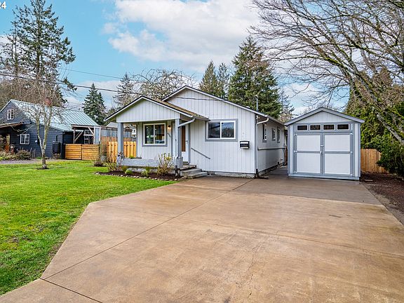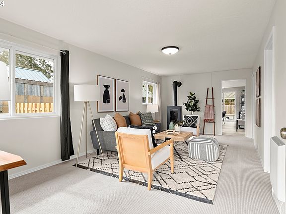 You have to see it to believe it, but yes, you can get a sweet turn-key-ready home in Portland for $350k! Nestled on an oversized lot, this 850 sq ft cutie in the Cully neighborhood lives large, with an efficient shotgun-style layout, two spacious bedrooms, a light and bright Jack-and-Jill bathroom, and a modern updated kitchen with newer appliances. There is even a darling dining nook and a storage/laundry area with washer/dryer hookups. The living room features a modern Nestor Martin radiant gas stove that keeps the house toasty warm all winter long + newer Milgard windows to help keep the heat in and the cold out. A slider off the dining area leads you to a big backyard with a covered patio big enough for a hot tub and a dining/lounge area. Two newer Tuffsheds on poured concrete for all your kayaks and camping gear. Additional updates include: a tear-off roof, remodeled bathroom, electrical panel, water heater, efficient wall-mounted heaters, carpet, and fresh paint throughout. There's lots of room to get creative for the gardening-minded; this backyard is fully fenced and teeming with mature Bartlett pear trees, dogwood, spring flowers, and more, just in time for the warmer months! [Home Energy Score = 4. HES Report at https://rpt.greenbuildingregistry.com/hes/OR10225922]