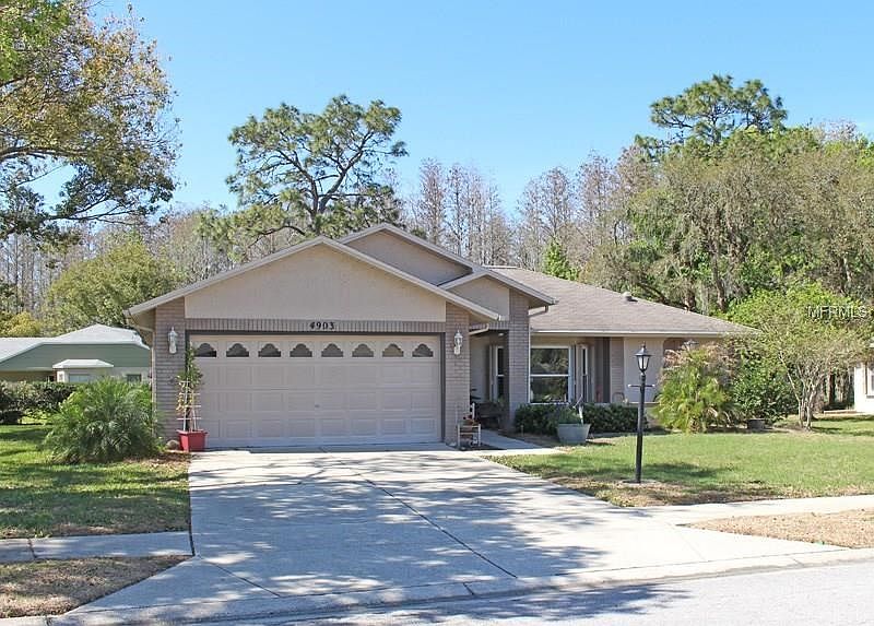 WHAT A BEAUTY! 2/2/2 ON A 1/4 ACRE CONSERVATION LOT IN ONE OF THE TRINITY AREA'S MOST POPULAR ADULT COMMUNITIES. LARGE OPEN ROOMS FLOODED WITH NATURAL LIGHT FROM ALL THE NEW WINDOWS WITH BUILT IN HURRICANE SHUTTERS! THE SQUARE SHAPED KITCHEN IS THE HEART OF THIS HOME & YOU WILL SIMPLY LOVE ALL THE NEW CABINETS THAT SURROUND YOU AND ALL THE APPLIANCES HAVE BEEN REPLACED AND ARE INCLUDED! THE PANTRY COMES IN HANDY. THE COUNTER BAR OPENS TO THE FAMILY RM ON ONE SIDE, THERE IS A WINDOW PASS THROUGH TO THE FLORIDA RM AND THE DINING RM AND LIVING RM ARE ON THE OTHER SIDE OF THE KITCHEN. WHAT A WONDERFUL FLOOR PLAN FOR ENTERTAINING AND ALMOST EVERY ROOM HAS FANTASTIC VIEWS OF THE WOODS! A VERY PRIVATE AND SERENE SETTING. THE SPLIT PLAN GIVES MAXIMUM PRIVACY TO THE GENEROUS MASTER SUITE FEATURING EVERYONE'S FAVORITE DUAL SINKS & STEP IN SHOWER. BEDROOM 2 ALSO HAS A BIG WALK IN CLOSET, BIG ENOUGH THAT IS IS BEING USED AS A HOBBY/OFFICE! ADD IN NEW HVAC, INSIDE LAUNDRY ROOM, SOLAR TUBES, LAMINATE, CERAMIC & CARPETING IN ALL THE RIGHT PLACES. WALK DOWN THE WINDING TREE LINED STREETS DOTTED BY SERENE PONDS TO THE ACTIVE CLUBHOUSE IT FEATURES A HEATED POOL & SPA, TENNIS CTS, BOCCI, PICKLE BALL, EXERCISE CLASS, CARD CLBS, FOOD & WINE CLB, POOL & BILLIARD ROOM, DANCES, PARTIES & MORE ACTIVITIES THAN YOU CAN KEEP UP WITH! HOMES IN THIS AREA, WITH ALL THESE EXTRAS AND UPGRADES GO REALLY FAST! PRICED RAZOR SHARP, THIS ONE WILL GO EVEN FASTER! HURRY! HESITATE AND YOU WILL BE TOO LATE!
