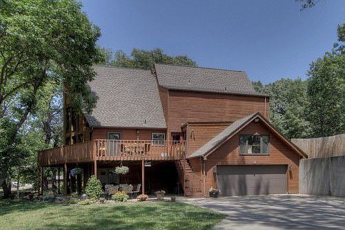 Complete info: http://4903quivirard.ePropertySites.com - Truly one of a kind A frame set on just under 2 acres of picturesque land with private pond. Soaring ceilings, HUGE master with 2 walk-in closets, tiled bath, and private loft space. Many great features including, hardwood floors, floor to ceiling windows, stainless steel appliances, 5 car garage, 3 decks and a patio for great outdoor entertaining.