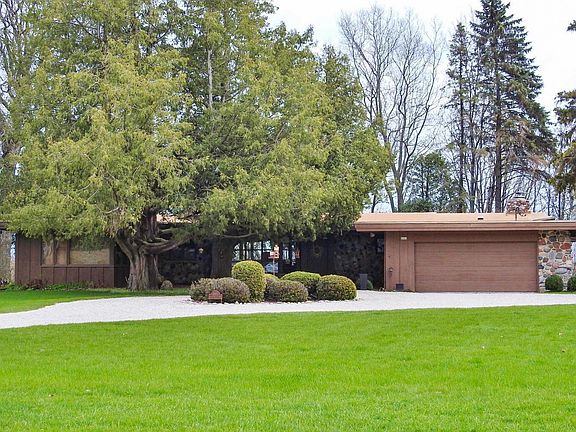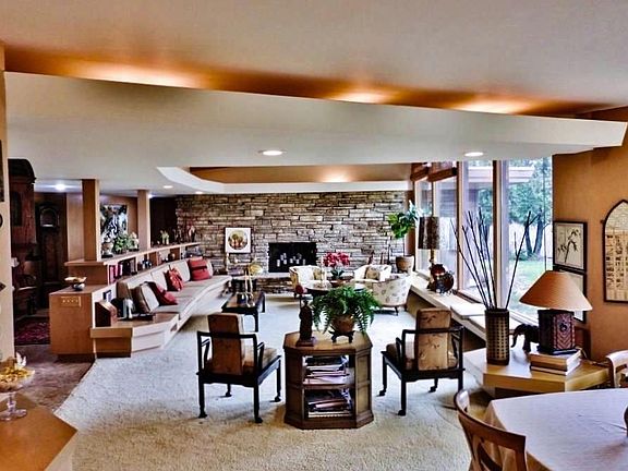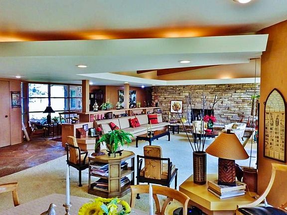 When your home is highly crafted art! Stunning & sprawling, this mid-century modern home was custom designed in the style of Frank Lloyd Wright by architect John Schuster - and in the same family since it was built! Schuster, like Wright, worked w/ natural elements to bring the outdoors in: capturing outdoor views w/ floor to ceiling windows, & flagstone in the entries. Beautiful dropped soffits provide style & recessed lighting. Built-in seating around the stone, wood-burning fireplace, built-ins in bedrooms, flush cabinetry for massive amounts of storage are also trademarks of a finely crafted Schuster home. This 2623 sf, 3 bd, 2 ba home w/2.5 car attached garage also has a finished bmnt. Circle Drive is being asphalted in May 2021. New water heater.