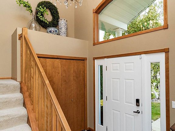 Incredible 2-story in Rose Creek featuring 4 bedrooms, 4 baths, and high-end updates throughout. Bright and open floor plan with floor-to-ceiling foyer, updated birch flooring, modern light fixtures, and large windows. The kitchen boasts granite countertops and updated appliances. The main level features an office/bonus room with French glass doors and a built-in bookcase, a gas fireplace with a marble surround, and a half bath. Mudroom with washer/dryer off 3-stall heated garage with sleek black doors. Fully finished basement offers a large bedroom with WIC, a gas fireplace with stone surround and built-ins, custom lighting, surround sound, and a stunning wet bar with quartz counters and backsplash. Beautifully updated ¾ bath with tiled shower and quartz vanity. Upstairs features 3 bedrooms, a full bath, and a spacious primary suite with dual WICs. Primary bath includes quartz counters, double sinks, a soaking tub, tiled floors, a walk-in shower, and custom stained glass windows. Fully fenced, beautifully landscaped yard with metal siding. This elegant, well-updated home is truly move-in ready!