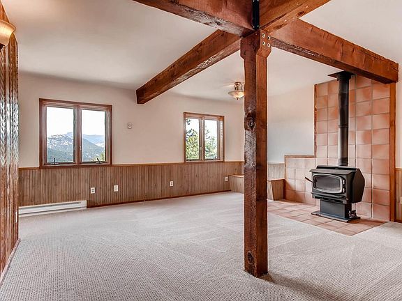 New price! Classic Colorado*Mt. Evans snow cap views are spectacular! Enjoy this Mountain Park community located within 5 mins to dwntwn Evergreen*The road is all paved up to the last 1/8 mile*Evergreen water & sewer*COMCAST HIGH SPEED INTERNET*3 sources of heat: passive solar, electric baseboard & wood stoves*Would be good for solar panels*Brand new roof!Multi-generational could work well with 3 living areas & 2 kitchens*Great room has lots of natural light, hardwood floors,real wood paneling & mtn views*Deck is off the great room with panoramic views of Mt. Evans*Open kitchen*SS appliances, pantry, & breakfast nook*Main floor bdrm or study & full bath right off the great rm*Next is a large family room on the main floor with views, wood stove, & new carpet*Upstairs are 2 more bedrooms with new carpet & a full bath*The walk out bsmt can be an in-law suite*It includes a kitchen with room for a refrigerator & 220 outlet for a stove*There is 1 bedrm, 3/4 bath & laundry hook-ups*snowblower