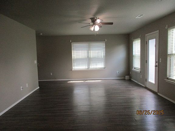 Duplex, 1350 sq ft, 2 story with 2 car garage and privacy fenced back yard. This unit features an open living concept downstairs, includes kitchen with all appliances: fridge, stove, dishwasher, microwave, garbage disposal and food pantry. Spacious dining area and living room with patio to back yard. Also has a downstairs 1/2 bath. All 3 bedrooms and 2 full bathrooms are upstairs. The master is located across the hall from the other 2 bedrooms allowing for privacy and includes a large walk-in closet and separate bathroom. The laundry is also conveniently located upstairs. Close to schools, restaurants and Wal-Mart neighborhood market. The lease term is for one year. Renter is responsible for all utilities: electricity, water, gas, cable, internet, and also responsible for lawncare. Must have renters insurance.