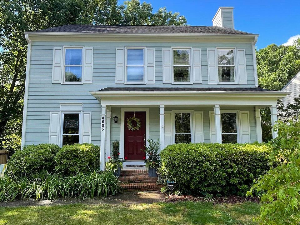 This is a house that feels like home. The hardwood floors are warm and welcoming, and the formal dining room offers the perfect place to host friends and family for special occasions. Windows abound on both sides of the house, making it feel tucked directly into the trees in the backyard. Many mornings and evenings can be spent sipping coffee and reading on the back porch, which serves as one of the favorite spaces in the house. A large primary bedroom and bathroom have great natural light, and two additional bedrooms have hosted many happy guests. The neighborhood is the cherry on top, with miles of walking paths and trails and easy access to local restaurants and shopping. And it is so convenient to Duke, UNC, Downtown Durham with the DPAC and the Bulls, and so much more. This home in the trees is well-loved in the best sense of the term!