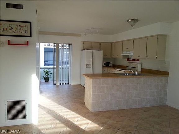 This is a great opportunity to rent a first floor condo in Miramar Arms Condominium. Total remodeling with clean white walls and beautifully redone kitchen. Bathroom with bright new tiled shower and tub and clean line white vanity tops. You must see this comfortable 2 BR, 2 Ba. unit with parking immediately at front and a 72 SF screened porch overlooking lawn at the back. Warm color tile floors throughout, a large eat-in kitchen with a completely open serving bar between kitchen and living room. Nice appliances, double stainless steel sink. Bedrooms are split, with tub shower in main bath. Walk-in tile shower in master bedroom. Wonderful closet space and inside laundry room. Super convenient to shopping, dining, and medical facilities. Located in the highly desirable neighborhood, about 1 mile from Cape Coral Beach, yacht club marina, boat launch, and waterfront park. Miramar Arms is well-maintained and has community pool with picnic tables & cabana for residents and their guests. Come and enjoy!