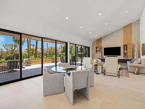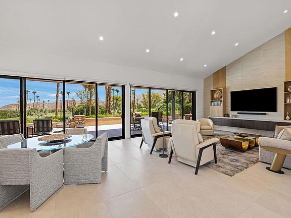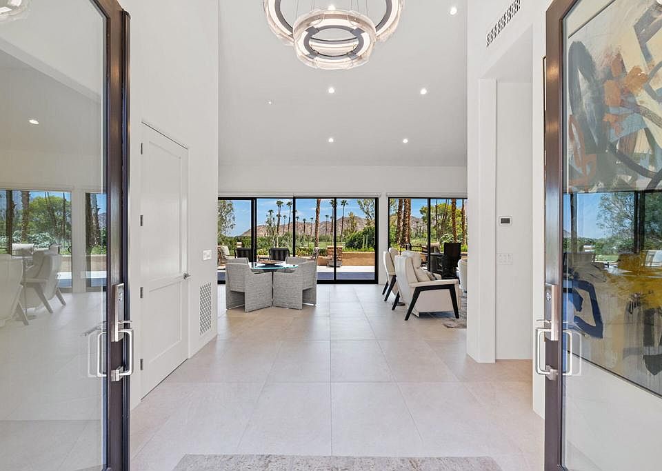 Welcome to this exquisite free standing Skyview Home nestled in the heart of Ironwood Country Club community.Mission accomplished in creating a sophisticated and perfectly executed total remodel that exudes elegance and comfort in a prime location. Elevated above pool/spa with perfect views of the golf course and mountains. Expanded private patio has raised windows and ceilings including built-in heaters and firepit. New stacking sliding glass doors enable full panoramic vistas. This stunning like-new Contemporary renovation is finely detailed and showcases high-end finishes in all areas. Flooring is 24x48 porcelain tile throughout with heated floors in primary & guest baths. Stunning powder room with Cristallo Quartz Slablite counter and custom faucet, mirror & pendant lights. Several Solar tubes have been installed with motarized blinds for sun or shade. The Solar panels are paid and Owned creating a great savings opportunity. New dual HVACs, mini split in garage and tankless water heater with WiFi controlling capabilities.Garage has been customized with poly coat flooring and steel double wall cabinetry designed to maximize storage & utility. Designer kitchen is state-of-the-art with 42''SubZero, Wolf appliances, Miele inwall coffee beverage center, (2) 24'' Sub Zero refrigerator drawers, Quartzite counters with waterfall island. Open floor plan is perfect for entertaining or just relaxing and watching the gorgeous sunrises or full moon rising over Mt. Eisenhower.