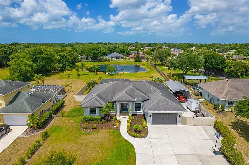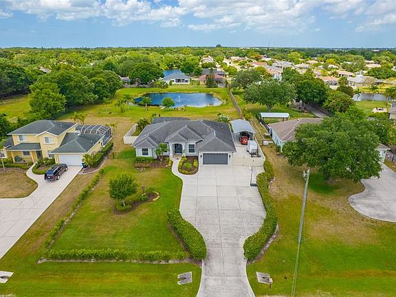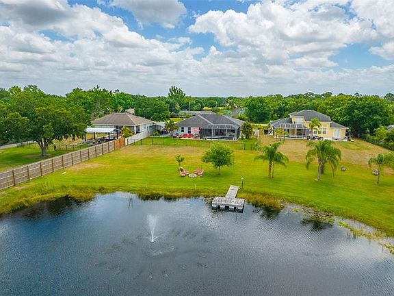 RV Carport, Saltwater Pool, Fishing Pond, Boat Parking...Bring all your toys! Come work and play in paradise! You will have the best of country living within easy driving distance to gorgeous Gulf coast beaches in this beautiful 3/2 plus office/den pool home. Situated on over an acre, enjoy the serene view of your private fishing pond with its own pier. Inside this beautiful 2484 sq ft home you'll find luxurious details including soaring 10 ft ceilings, crown molding detail, cherry flooring and travertine baths. The open floor plan includes a large upgraded gourmet kitchen with granite countertops, wood cabinetry, ample countertop space, breakfast bar, and matching stainless steel appliances including a propane range! There's also a den/office space that includes a built-in Murphy bed. Relax and unwind in the enormous master suite that features NuCore Waterproof Flooring. Two other bedrooms and another bathroom round out this wonderful indoor space. There are no restrictions here, so bring all your toys! This property features an RV Garage with 30 Amp and sewer hookups to the house, and the expansive driveway and additional parking on the side of the house means there's also room for your boat. Enjoy beautiful Florida nights in luxury with a heated salt water pool and spa with cage, an outdoor shower and half bath. Entertain all year long with the custom outdoor kitchen! Enjoy cooler nights around the firepit. Professional landscaping and an irrigation system create the perfect oasis here. It is truly country living at its finest and close to everything Sarasota and Bradenton have to offer!