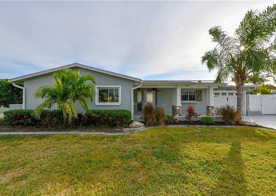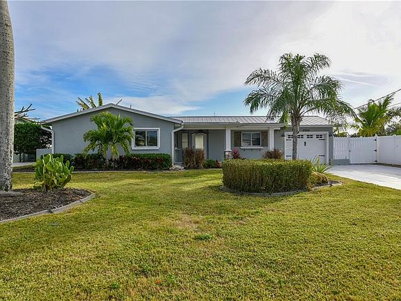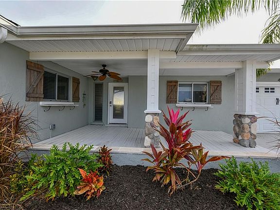 FLORIDA LIVING AT IT'S FINEST! This Key West Style home is VERY INVITING, perfect for ENTERTAINING! Step inside and immediately be drawn to this well appointed home highlighted by charming wood accents and beautiful custom light fixtures. This home does not disappoint, from the time you walk in, to the time you walk out the French doors. The kitchen boasts antiqued hard wood cabinets, granite countertops, tile backsplash, and stainless steel appliances. The dining area, kitchen and family room are all open floor plan, which make for a very inviting space. The dining area is unique with a shiplap accent wall, and enchanting mason jar style chandelier light fixture. Whether you're entertaining inside or outside this home is seamless, with a beautifully renovated Florida room, complete with brick WOOD BURNING fireplace. Master bedroom is large and is accompanied by equally large windows, which overflow the room with Natural Light. Each bathroom is fully renovated, new pebble shower flooring, glass enclosure, and beautiful coastal circle mirror adds a nice touch. On the exterior you'll find a new METAL roof, and columns that are wrapped with RIVER ROCK. There are porches on the front and back of this home, giving you the opportunity to hang outside as much as you'd like! Rock in your rocking chair or hang out back by the pool, where you can fire up the BUILT IN KITCHEN's grill or the built in FIRE PIT! Deep sailboat water with direct access to The Gulf Of Mexico, 20' x 8' dock with 10,000 pound boat lift.