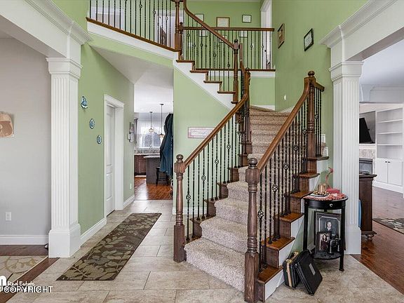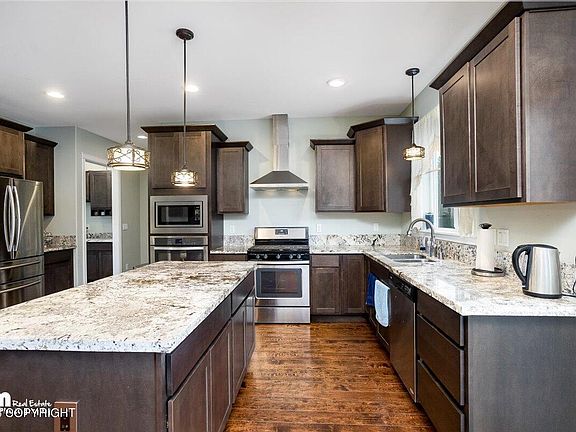 Sunshine streams in this luxurious home in The Ranch. Large Chef's kitchen w/ Butlers Pantry opens to spacious family room with fireplace and wall of windows. Formal living room and dining room. LVP flooring downstairs. 4 spacious bedrooms up include gorgeous master suite and XL bonus room over the garage for all your fun activities. Easy commute locationKitchen has gas range, new microwave, 2 ovens, granite countertops and 42" cabinets. New water filtration system. Master bedroom has fireplace and a garden soaker tub for warming up on cold Alaska nights. Laundry room and extra storage off garage. Washer/Dryer can stay.