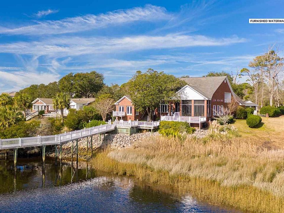BE SURE TO CHECK OUT AND CLICK ON THE EXCITING DRONE VIDEO OF THIS HOME AND WATERWAY ON THE VIRTUAL TOUR LINK OF THIS PRESENTATION - ABSOLUTELY STUNNING DIRECT WATERWAY VIEWS FROM THIS FIRST CLASS CUSTOM BUILT FULLY FURNISHED INTRACOASTAL WATERWAY 6 BR, 4.5 BA BRICK HOME WITH CIRCULAR DRIVEWAY IS A SANCTUARY BOAT LOVER'S PARADISE IN PEACEFUL, SERENE LOCATION WITH A POOL/HOT TUB INSIDE SCREENED PORCH on .70 acre offering luxury living, first class upgrades, and ultimate privacy with over 5200 heated sq. ft. and over 7400 sq. ft. overall under roof including oversize 3 car garage 24' x 40', screened porch, balconies and walk-up abundant storage over garage PLUS amazing gorgeous maintenance free trex type decking and 760 ft. maintenance free walkway leading to impressive covered roof boat house, floating dock and 10,000 lb. boat lift with new motor. QUALITY CONSTRUCTION creatively built by one of the area's finest builders & architect, the entrance foyer of this distinctive home provides immediate, awesome views of the waterway, abundant crown molding and chair rail molding,beautiful hardwood flooring, soaring ceilings in bright & airy living room accented by a most unique brick fireplace along with custom cabinetry & wet bar, large formal dining room for gracious entertaining, and an INCREDIBLE 15' x 30' upgraded gourmet kitchen with gorgeous granite counter tops and cherry wood cabinets galore, pull-outs in cabinets, large island with stove top and pop up venting, all high end appliances including Sub Zero refrig. and Bosch dishwasher, water filter system, vegetable sink and breakfast space overlooking the waterway. This large main level living also offers a private guest bedroom with elegant retro bathroom ensuite, powder room off foyer, a fabulous man cave room accented by wood coffered ceiling & fantastic water views and door leading to deck. Enjoy a first level his & her master suite bedroom possibility with a fabulous, spacious shared bathroom ensuite complete with tiled surround shower, separated double vanities, and abundant master closet. Wonderful 14' x 9' main level laundry room with cabinetry, storage, and more completes the main level living. Beautiful wooden stairway to 2nd level leads to a fabulous 18' x 26'9" master bedroom with stunning bathroom including oversized walk-in shower. Enjoy waterway views from the balcony overlook and move next to a bright and sunny alcove bedroom ideal for twin beds or perhaps used as a sewing or hobby room. Continue to a full bathroom and 6th bedroom on north end of the home with a walk-out balcony where the splendor of breathtaking waterway views are absolutely priceless. The many extra benefits of this home also include 2 geothermal AC/heating systems situated in the large concrete floored area underneath the back porch and resulting in very reasonable electric bills. (Specific details to be provided.) Additionally, a switch at front door will turn on all receptacles in the front windows of the home for ease in illuminating window candles or wreathes. A 250 lb. propane tank heats the hot tub and provides gas to grill and fireplace. Stairway access to the floored storage above the oversized 3 car gar. provides storage that most people only dream of. Dreams and promises of the ultimate in fabulous living on the waterway can be fulfilled at last!