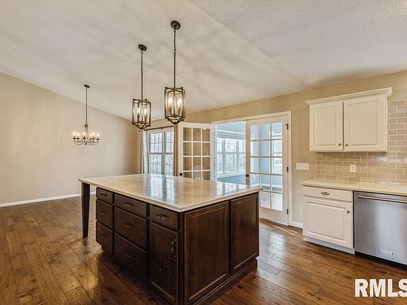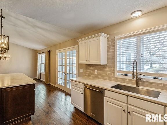 Beautiful three bedroom, three bath home for sale in Davenport, IA! This updated split foyer has over 2500 finished SqFt and features a gorgeous kitchen with giant 8ft island+, stainless steel appliances including a smart induction stove, hardwood floors, Corian countertops, tile backsplash and french doors that lead to a lovely four-seasons room. Other features include; vaulted ceiling, gas fireplace, nice window treatments and primary bedroom on-suite with double vanity. Also the lower level has a spacious rec area with bathroom, large laundry room with utility sink and folding counter with storage. Good sized fenced yard with deck and awesome sized 30x26, two car garage!