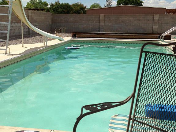 Seller says bring me an Offer! Beautifully Updated home located in Taylor Ranch, 1 block off Montano and half mile from Coors. Stylish updates include: gorgeous vinyl wood floors, carpet in bedrooms, light fixtures, fresh paint and window coverings. Lovely kitchen with refinished cabinets, hardware, countertops, appliances, stainless sink, faucet. Bathrooms have been remodeled and are sparkly! Sparkling heated, gunite pool with newer mechanicals and automatic cover. New TPO roof with 5 year warranty, new stucco, new thermal windows. Open floor plan, this light and bright home is a must see! This is a well-maintained one owner home and is not a flip. Home inspection has been completed. Call for details.