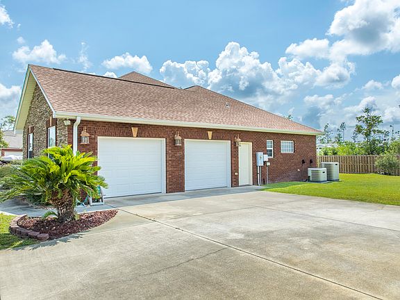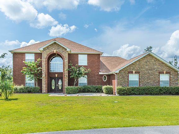 A custom designed built brick home with only the highest quality design and material used to create. Enjoy the peace & quiet of country living while just 10 minutes to Lynn Haven and shopping. Entering the home throoghdouble mahogany doors lead into a 15 foot foyer featuring a solid oak staircase flanked by a formal dining room and living room showing off the breathtaking lighting and fans through out, granite kitchen with custom cabinets, pantry and breakfast room opens up to the huge family room with 2 sets of double french doors leading out to the back covered patio. The very private & spacious master suite is on the first floor with en suite bath and walk-in shower,double mahogany vanities and large walk-in closet. Laundry room is off the hallway downstairs and the double garage is