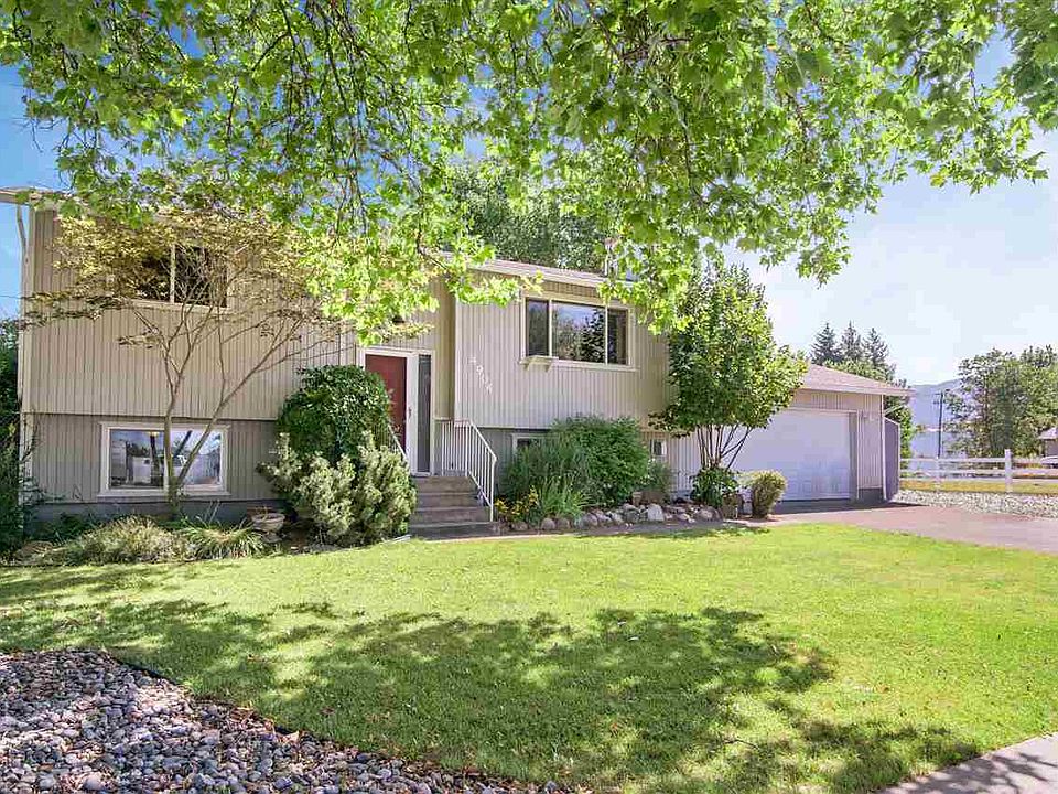 This charming home is situated on an expansive 1.10 acre lot with a fantastic 24x30 shop! Extremely well cared for with light and bright rooms, gas insert fireplaces up/down, newer paint & carpet, updated baths. Kitchen has lovely cabinetry, ample storage & working space with room to dine. The lower level has large family room, and uniquely designed private master suite. This property has incredible space to park RV's, Boats & Toys, crossed fenced for pets and nicely landscaped. This home is a must see!