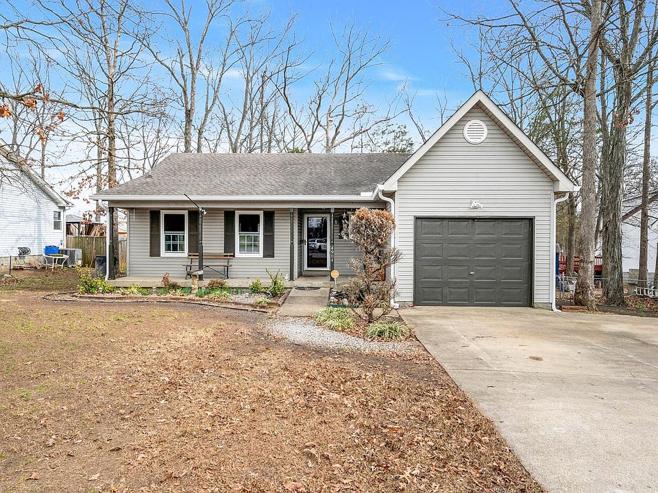 Experience the ease of one-story living in this cozy, well maintained ranch-style home, no HOA hassle. With a split-bedroom setup, the primary suite offers ample space with a private bathroom and a walk in closet. Recent upgrades include new double hung windows, new 6 inch gutters and downspouts, new floors in bathrooms, and new carpet in bedrooms. Kitchen has stainless steel appliances and reverse osmosis water filter. Plus, there's a whole-house attic radiant barrier for energy efficiency. Outside, a large fenced backyard with mature trees and a spacious deck awaits, along with 2 storage sheds, and pre-wired for your hot tub. Conveniently located to Nashville , 10 minutes to BNA, 6 miles to the new Tanger Outlets and 2 miles to Four Corners Marina. Don't miss out, book your showing now!