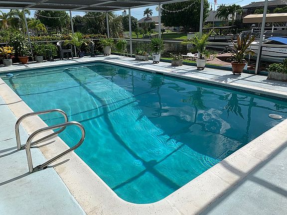 Waterfront Duplex. South Cape Coral central location with large heated pool. 5 BR 3 BA, laundry room & 2-car garage. Canal is sailboat-access (no bridges), a few minutes to gulf open-water. Dock & 24 ft Lift. Quiet neighborhood, close to everything – supermarkets, restaurants and entertainment district, and 5 min to Fort Myers bridge or to Yacht Club Beach. Short walk to Bimini Basin & Four Freedoms Park.