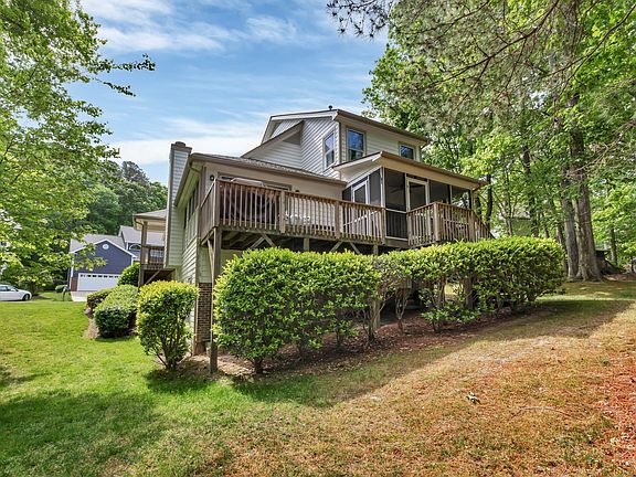 Spacious HOME in a Golf Community just 15 minutes to Downtown Raleigh. HOA covers all exterior maintenance, First floor includes primary suite, living room, kitchen, dining room, half-bath with laundry, and sunroom. New wood flooring on main level. 2nd story holds two bedrooms with connecting full bathroom. Finished basement with living area, office, wet-bar, built-ins and storage. Exterior has decks and screened in area. Windows replaced 2022.