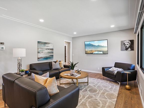 Welcome home to this spectacular midcentury walkout rambler situated on a sprawling tree lined lot in coveted Golden Valley! Renovated kitchen, custom cabinets, high-end Thermador Appliances, Quarts Countertops, complete with waterfall backsplash. New hardwood floors, updated black vinyl windows and entry doors. Custom blinds, flat ceilings (popcorn removed) recessed lighting throughout. New furnace and central AC unit. Updated bathrooms with marble tile. Attached garage with Tesla EV charger. Schedule your showing to see this beautiful home today.
