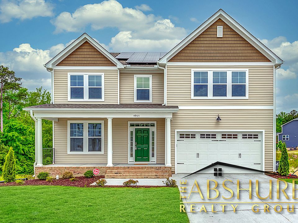 **LEASE PENDING** Available Now! Short term and long term lease available. New construction 5 bed 4 bathroom cul-de-sac home located in pool community, Langston Ridge Subdivision of Knightdale, NC. The Concerto floor plan with finished basement was built by prestigious home builder, Chesapeake Homes. The energy efficient home has Solar Panels on the architectural roof allowing for an included $200 Electricity allowance included in the base rent. Plush carpets, site stained Oak treads, Luxury Vinyl Plank flooring compliment the light and airy open floor plan. Espresso 42" cabinets with new Stainless Steel appliances, Built in dishwasher, microwave, electric range and range hood. Wall mounts installed for the convenience of resident to mount TVs in the Basement, 1st floor living room and 2nd floor loft. Built in speakers in the 2nd floor living room. Master bedroom features a custom tray ceiling, oversized Walk in Closet, dual vanity quartz countertops, separate ceramic tile shower w/ bench and garden soaker tub. Covered rocking chair front porch and covered rear balcony that overlooks the protected pond. Bedrooms are located on each floor. 1 Bedroom in the basement, 1 bedroom on first floor, 3 bedrooms including master located on 2nd floor. All bathrooms have quartz countertops. Pet friendly home subject to pet fees and restrictions. Tenant is responsible for lawn care maintenance but landscaping can be included in base rent for an additional $100 per month. Tenant is responsible for establishing gas service, water, sewer and their own Washer and Dryer. Listing proudly presented by The Abshure Realty Group, an equal housing opportunity provider. Please contact David Michel Jr for additional details and applications. **Short Term lease offered at varying rate.