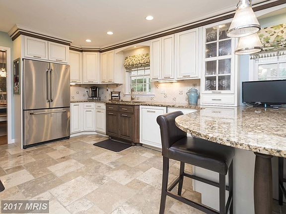 Beautiful colonial. Updated throughout. hardwood floors, crown molding & custom built-ins. Kitchen features limestone flrs, granite, & SS appliances. Large MBR w/sitting area & walk-in closet. Recroom in basement with kitchen, BR, full bathroom & walkout to patio. Open porch wtile floor overlooking landscaped yard w/in-ground pool. Laundry room on upper level. 3 car garage. New roof & new windows