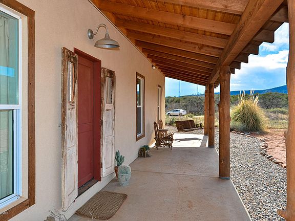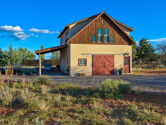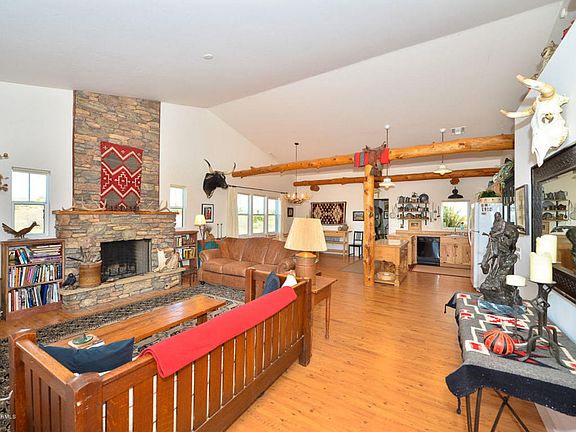 Must see this gem, an immaculate New Mexican Territorial with a cowboy twist! This horse property has a very spacious open floor plan with cathedral & 10' ceilings, decorative vegas, hickory cabinets in the kitchen, alder custom doors & beautiful gas & wood fireplace, 3BR 2Ba, 2x6 construction, plenty of storage & closet space in the main house. Full covered porches front & back for star gazing at night or just enjoying the majestic views of Casner Mountain.Separate laundry/mud room. Don't miss the 24x31 garage/tack room with 744 sq ft guest/caretaker quarters above. Fantastic home all on 5 acres,plenty of room for horse stalls & under shades for horses which are connected to garage/barn. Enjoy the peace and quiet where the deer and the antelope roam! Backs to Forest Service.