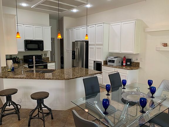 Great Opporutnity in very sought after Desert Ridge! This home is perfect for entertaining and features a Greatroom and kitchen with French doors that opens unto the patio. Large eat in kitchen with beautiful breakfast bar and Granite Kitchen Counter tops with stainless steel appliances. Tile throughout the house except for the bedrooms which have carpets. Spacious backyard pebbletec pool surrounded by a detachable mesh pool fence installed 2019 . Large 3 car garage. AC unit installed 2017. 50 gallon water heater installed Feb 2019. Master bedroom sun screen sliding door installed March 2019. Pool cartridge filter installed 2019. New Samsung Washer/Dryer 2019. Solar City Solar Panels Installed 2017 and owned! Seller is a real estate agent in the state of Arizona.