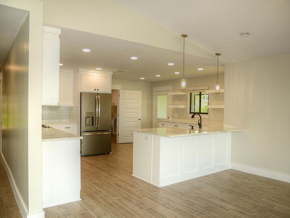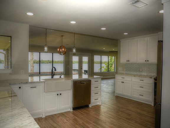 Completely renovated home in modern farmhouse style with boat dock on Deerpoint Lake. Low maintenance, wood-look tile throughout the downstairs with rustic hardwood upstairs. Spacious 1st floor master bedroom with his and hers walk-in closets and spacious walk-in shower. 3 bedrooms upstairs with 2 having gorgeous lake views. Custom cabinetry throughout the home. Living room and dining room feature huge picture windows with panoramic lake views and large, vaulted ceiling. Open kitchen looks out onto the lake, as well. Lovely back deck for entertaining. Boat dock with water, electric and a spot to park your boat. Home sits on a protected arm of the lake, perfect for wakeboarding, kayaking and fishing! Extra-spacious garage with an additional workshop room with sink. New sprinkler system.