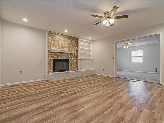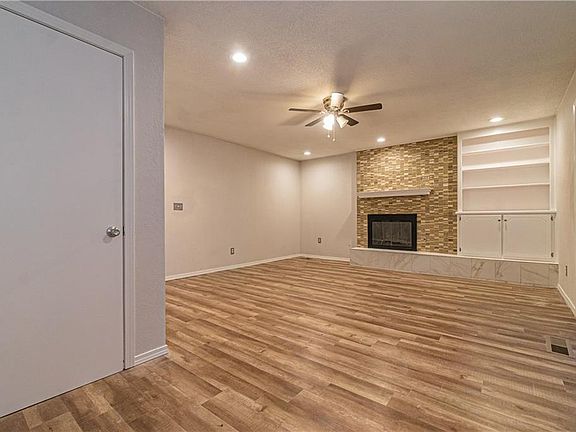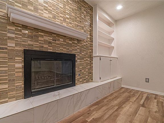 The owner showed great detail in revitalizing this home to a modern feel. The home has been slightly lived in and well taken care of. It features gorgeous wood-like tile in living area and carpet throughout, stainless steel appliances, beautiful kitchen, open concept with modern colors. Lovely tiled fireplace in living area, built-in book shelve next to fireplace. This home is welcoming and inviting at the end of a cul-de-sac. You will love the master suite with its own cozy privacy fireplace, beautiful bath and two closets. All 4 bedrooms are a nice size and has plenty of room for all including space for an office or game room. 3 bedrooms upstairs and 1 downstairs. Great for entertaining and dinners. Out door storage shed, in ground storm shelter. Close to Tinker and I-240. Minutes away from shopping, dining and entertainment. This home is a must see!