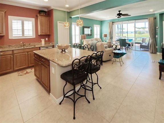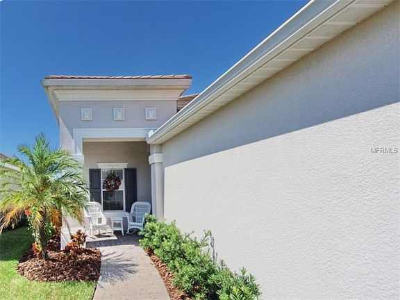 AWC - Taking Backup Offers Back on the Market...If you are looking for a lakefront view in a gated and maintenance free neighborhood plus a community pool and fitness center with very low HOA Fees - this is it! All the waterfront villas are now sold so this is a real opportunity! This gorgeous villa was built in 2013 and it is in pristine condition. There are 2 bedrooms plus a den or dining room, 2 baths and a 2 car garage. This great room plan features upgraded cabinets, granite counter tops, stainless steel appliances and an island with seating for four in the kitchen. It is open to the living room and looks out to the lake through the sliding glass doors. The master bedroom is located at the back of the home and has an incredible view of the lake. The en suite bath has a large walk in shower and dual sinks. This home has also been upgraded with tons of goodies that include the den/dining wall with french doors, crown molding, plantation shutters, designer wallpaper in the kitchen and baths, the extended screened in and paver lanai, glass front door, 2nd bath shower enclosure, upgraded light fixtures, ceiling fans, medicine cabinets, laundry cabinets and much more! This home is centrally located with easy access to Sarasota and Bradenton Beaches, Shopping at UTC, Sarasota-Bradenton Airport and I75.