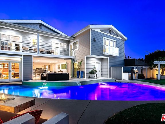 A spectacular reconstruction, redesign and reimagining brings contemporary luxury to the most sought after neighborhood in Valley Village with this masterful, modern makeover. Reflecting leading-edge design with a polished sophistication the home crowns an expansive, nearly 9,000 square foot corner lot with verdant, distinctive grounds handsomely appointed with mature fruit trees and eco-friendly, drought tolerant landscaping. Inside, soaring open spaces are casually elegant and airy with captivating natural light. Baths feature fine lighting, fixtures and finishes. The kitchen is a culinary center where style, form and function converge for the adventurous at home chef curated with an array of fine stainless steel appliances, butler pantry and breakfast room. With an emphasis on lifestyle, the outdoor space defines Southern California living as folding glass walls disappear to reveal an idyllic backyard retreat fulfilling every entertainment possibility with fire pit, pool with water features, dining, outdoor kitchen and BBQ. The ideal venue for warm, relaxed poolside lounging by day, cool gatherings and lavish entertaining by night. Highlights include a solar panel system,16-camera security system, vacuum system, direct access two-car garage, porte cochere and gated driveway. Five bedrooms, five baths and an office, including a magnificent, luxe primary suite round out the comfortable accommodations. Located in the award winning Colfax Charter School District and moments major film and TV studios, beloved Valley Village Park and the famed NoHo Arts district. This exceptional residence with a stylistic identity all its own is the place where you want to live. Welcome!