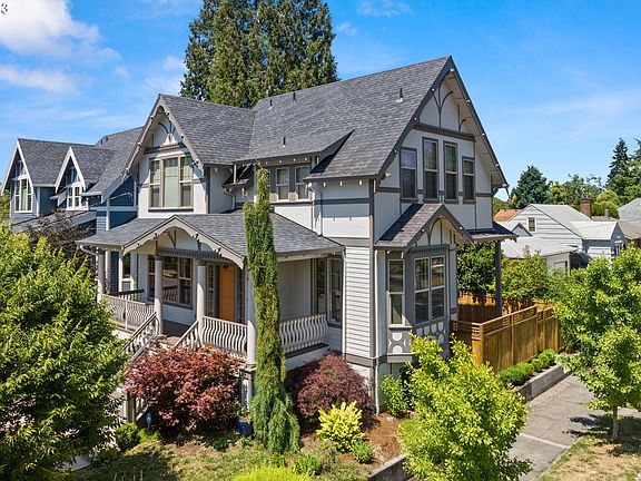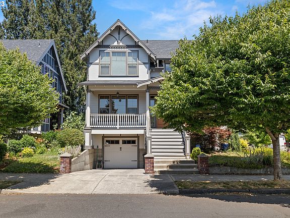 This upgraded custom built home boasts a spacious, flexible, and open floor plan. Impeccably maintained by the original owner inside and out, offering a unique blend of old-world charm and contemporary comfort. No need to worry about painting the exterior since it was just completed! Move in ready with designer colors throughout, upgraded Hunter Douglas plantation style shutters and hardwoods on main level. Great room boasts expansive sunny windows, hardwoods, high ceilings, picture rail crown ceiling with up lighting, built-ins, and gas fireplace with tile surround. Dining area is perfect for entertaining flowing into the high-end kitchen with farmhouse sink, custom hood vent, stainless steel appliances, gas range, granite, timeless white cabinetry, and garden window. Main level den (possibly double as formal dining or living room?) is complete with French-doors, beamed ceiling and bay window. Vaulted primary suite offers not one, but two, walk-in closets (one with organizers). Spa like primary bathroom features dual vanities, glass enclosed shower with tile surround and dual shower heads. Desirable private 4th bedroom and adjacent full bathroom on lower level. Inviting covered porch and fenced backyard with patio - either one perfect for morning coffee. Surprise - Extra deep garage! Upper-level windows feature upgraded two-way Duplo window shades. All appliances included, plus washer and dryer. Home Energy Score boasts with a 9. Hop and skip to University of Portland. Minutes to New Seasons, Starbucks, Cathedral Park, Portsmouth Park, dog parks and everything else that adorable St Johns has to offer! Bikers paradise with bike score of 98. Walk Score 80. This home will impress and inspire with everything you could want in the heart of this vibrant neighborhood. [Home Energy Score = 9. HES Report at https://rpt.greenbuildingregistry.com/hes/OR10204263]