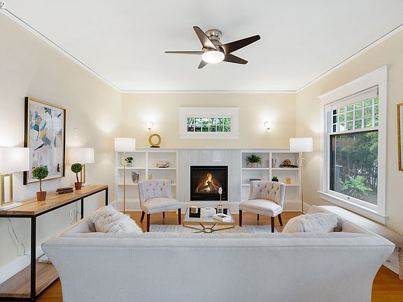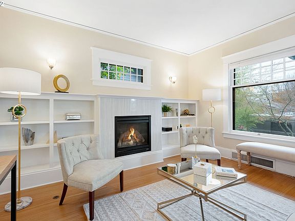 - Features: Bookcases, Builtin Features, Ceiling Fan, Fireplace, Hardwood Floors, High Ceilings