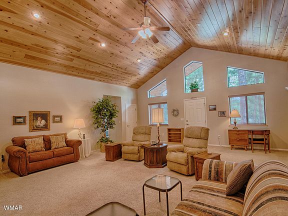 Perfect home in the mountains! Located in Pinetop Lakes CC on nicely landscaped lot covered in Ponderosas. Open spacious floorplan with split bedrooms and Pine T&G vaulted ceilings. Excellent condition, Fully Furnished and ready to move in.