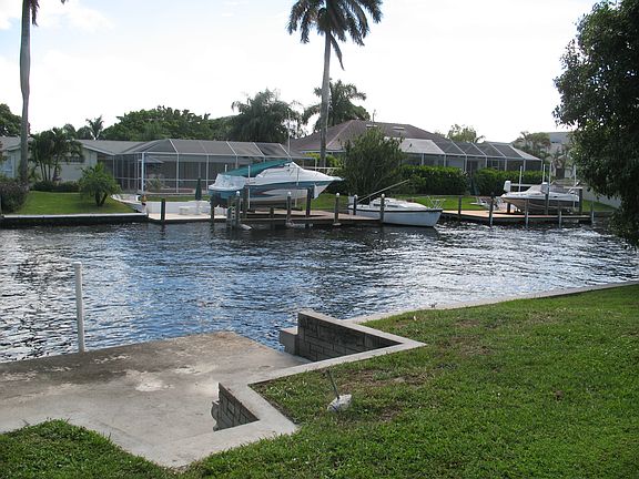 This is a 2 bedroom 2 bath 1 car garage located in the SE yacht club area. this is a large pie shaped lot, 80' across the front and 145' across the back all on a sea wall with a dock. A lot has been done to this house. All new paint inside and out, all new light fixtures and fans, all new switches and outlets, 2 new toilets, new vanities in both baths, new steel door between kitchen and garage, new hurricane rated garage door and opener, garage painted walls and speckled floor, new roof on back lanai, all new metal and screen on back lanai, new soffits installed. all patio door wheels replaced and locks all work. this house has 1385 sq ft. plenty of room to add a 3rd bedroom. house built in 1964, tile roof replaced in 1997, ac works good. what it needs: kitchen has been gutted and ready to install a new kitchen, the floors are all terrazzo, ready to be refinished, tiled or carpeted, the interior doors are currently all flush doors and a few need to be replaced. house is solid. Current asking price is $259,900, open to all serious cash offers, not interested in listing at this time. we can continue to improve home and price will reflect improvements or finish it your way now. UPDATE: With a full price offer we will include a new kitchen with color and door style of your choice, new granite counter tops and appliance package. please call for details. also a lot just a few doors down just sold for $340,00 for just the lot alone. any replies by email please put Normandy in subject line to avoid spam. please no calls before 8 am or after 8 pm contact Andy @ 239-560-0778 or Gordy @ 1-847-651-9053