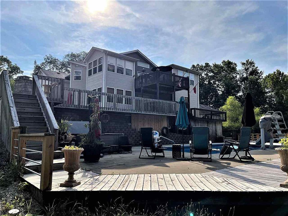 SPACTACULAR!! ,,,,just one word that may come to mind when describing this truly one of a kind home being offered by the original owner and builder. Originally a 3BR 2BA ranch built in 1995, added onto in 2011 more than tripling it's original size to now total over 5000sqft! Breathtaking is another word that will likely come to your mind as you walk through the entry into the open concept living area boasting gleaming wood cathedral ceilings and a chef's kitchen with every option you can imagine,, including bar seating for 10+ people, double ovens, jenn-air gas range, serving bar and an adjoining formal dining area. This main area also includes a cozy den with gorgeous cove ceiling , an office or bar area with built-ins and fireside seating perfect for nap time. Tucked away you'll find 3BR and 2 full baths including an oversized master suite. First floor laundry directly off the attached garage. On the lower level, you'll find an additional great room with children's play nook, a full kitchen with bar, and 4 bedrooms including a master suite,,,making a total 7 BEDROOMS!! THEN THERE'S OUTSIDE!! Multi-level decking gives access to covered porches, an outside stone fireplace with patio, and a lower level with inground pool and hot tub. The pool is heated, so you'll be using this baby half the year! This home has it all and is priced to SELL. If you're looking for a home with room for a large family and like to entertain, this is the home for you!