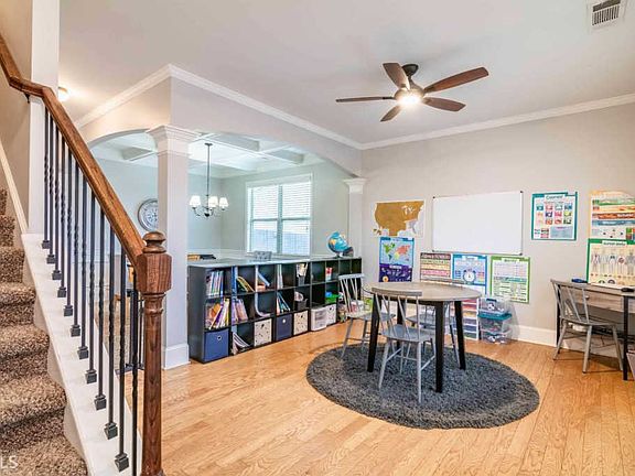 Come sit on this inviting front porch and feel the breeze from your fan! This beautiful traditional home offers wonderful features that will delight your buyer. A desirable open and bright floor plan with a large kitchen with view to the family room. Great functional kitchen offers a large bar area, island, granite counters, stainless steel appliances and breakfast area. Coffered ceiling dining room w/ living room/office area. Master suite with granite counters, tile floor, tiled shower & separate tub.