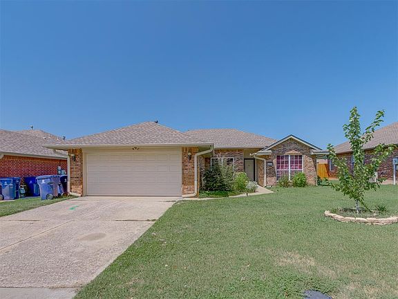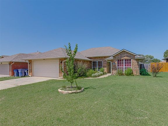 Open concept floor plan with an ideal location!! This 3 bedroom 2 bathroom home with dedicated dining area and spacious plan features endless possibilities! So much to love about this home from high vaulted ceilings, sunny well laid-out kitchen with gas range, pantry, and a breakfast bar! Very spacious living room with corner gas log fireplace acting as the rooms focal point. The large living space is open and has many design options! The large windows throughout let in stunning natural light. Large master suite with custom box ceiling treatment, great master bathroom with soaker tub and perfect L-shaped walk-in closet. Two guest beds and guest bath are on the opposite side of the home, allowing for ample privacy! Large 2 car garage for extra storage. The backyard is perfect for relaxing and minimum maintenance. There is a short walk to the beautiful Mackleman Park and Parkview Elementary! Optimum choices for an effortless commute to either Tinker's West Gate or I-240 is just down the road. There are so many amenities within a quick distance!