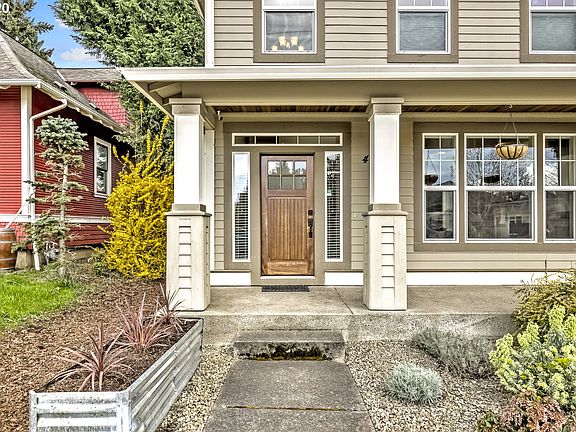 Spacious, move-in ready home on quiet street in FoPo! Enjoy high ceilings w crown moldings, extensive high-end millworks & Tigarwood floors throughout the main level. Large kitchen w slab granite kitchen island is a chef's dream! Kitchen opens to both the dining area w box beam ceilings, & to a cute patio & fenced yard complete w planter boxes ready for Spring! Roomy bedrooms, one on main. Master has a walk-in closet + huge bathroom. Access to garage via paved alley in rear. See virtual tour! [Home Energy Score = 7. HES Report at https://rpt.greenbuildingregistry.com/hes/OR10183024]