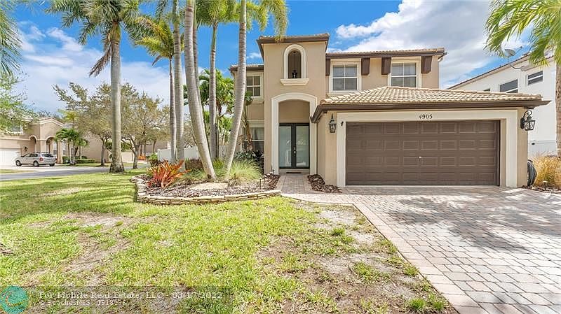 Perfect starter home 3x2 located in the stunning Riviera Isles community. Gigantic 2606-interior square feet, 2-car garage, gorgeous backyard setup with updated heated pool, cascading waterfall, and an open fire pit to really take in the SFL life style. Beautiful travertine flooring throughout the ground floor that opens into a spacious open kitchen with charming island setup. Black and gold speckled granite countertops, stainless steel appliances, with huge walk in pantry. Heading upstairs to the second floor which has a media room/play area/office/adaptable room area, sprawling master bedroom with gorgeous master bathroom, lovely second bathroom, and two large bedrooms. Tons of amenities, man guarded gate, solid school systems all make this an amazing opportunity.