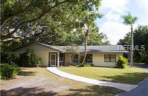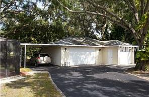 An oasis of tranquility surrounded by a quiet private setting. Long driveway leads to this home (unseen from the street) to a peaceful scene of laid back easy living. The Great Room is truly ""great"" encompassing a living room dining room kitchen with breakfast bar for 10 and a den. All open and relaxed - wonderful for entertaining. Island range is gas - a cook's delight. Large screened lanai has paver brick flooring. Master Bedroom has sliders to access an open brick patio. Driveway extends to a circle drive in the back and takes you to every man's dream - a 4 car garage. There's also an attached huge carport. Motion detector night lights. Furniture available separately. Secluded but perfectly located in the heart of Sarasota. Less than 10 minutes to beautiful Siesta Key Beach fine dining shopping downtown Sarasota I-75 and the new Town Center Mall. See it now - make it yours.
