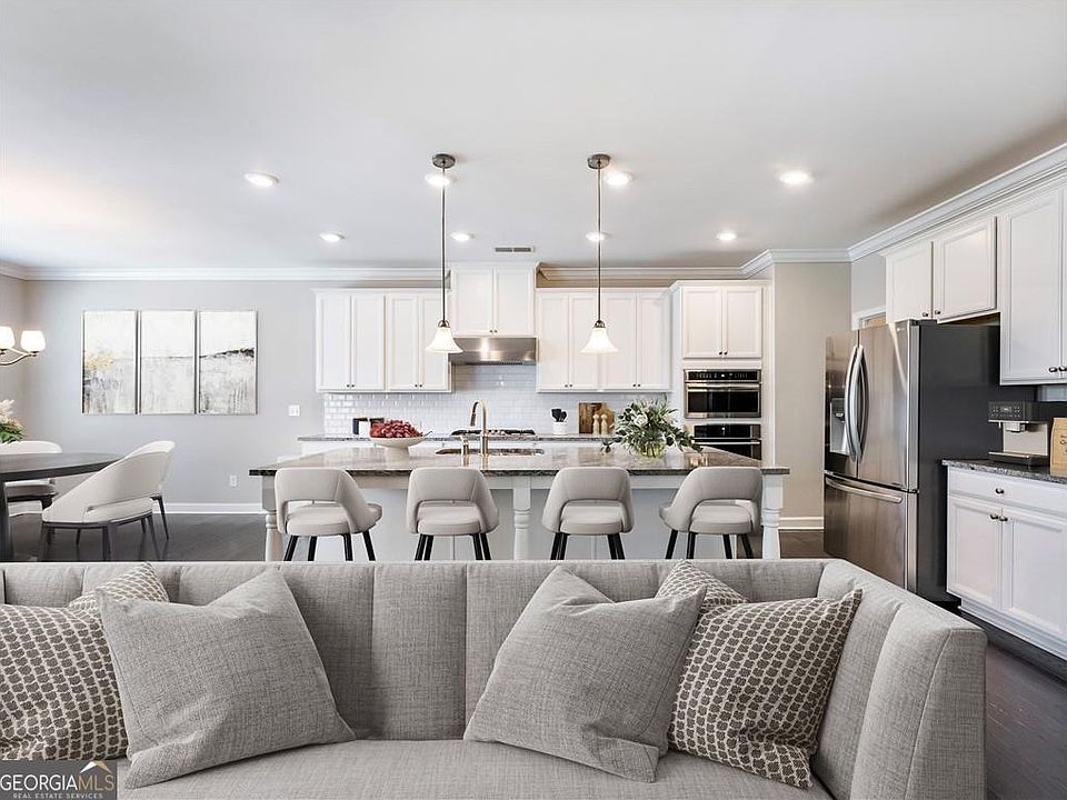 4 SIDED BRICK HOME ON A BASEMENT WITH WALK-ABILITY TO BUFORD CITY HALL, BUFORD CITY HS, AND BRAND NEW STATE -OF-THE-ART FOOTBALL STADIUM! BEST VALUE IN BUFORD CITY SCHOOLS! Welcome to your dream home in the heart of coveted Buford City School district, known for its superior academic and athletic excellence! THREE CAR TANDEM GARAGE for easy parking and storage. Enjoy low-maintenance living and lower utility costs with HOA dues that include lawn care, so you never have to worry about yard work. This beautifully designed home offers the perfect blend of space, comfort, and convenience. Flooded with natural light and gorgeous hardwood floors, the open and spacious floor plan features a bedroom and bath on the main level, ideal for guests or multi-generational living as well as a flex space perfect for a study, piano, or formal living area. This modern, gourmet kitchen is a chef's dream with stainless steel appliances, subway tile backsplash, granite countertops, large island with bar seating showcased by pendant lighting, and an open view to the breakfast nook and great room. Step outside to a covered deck with a floor to ceiling cozy fireplace already equipped with a TV, ideal for entertaining year round. Imagine curling up by the fire for your favorite show while enjoying the crisp fall breeze! Upstairs, the luxurious primary suite boasts double tray ceilings, modern spa-like bath with dual vanities, tiled shower, separate tub, and ample closet space. Two secondary rooms and an additional spacious bathroom complete this desirable layout. The basement features an additional bedroom and full bath with garage access, and an unfinished area ready for your dream home theater, workshop, or hobby room for the option to ADD INSTANT EQUITY! Convenient to restaurants, outdoor concerts, shopping, medical facilities, Mall of Georgia, Lake Lanier, and I-985. Don't miss out!