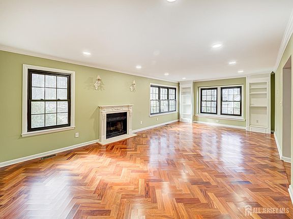 Welcome to Bright and Shine, a stunning 2,671 sqft luxury home offering the perfect blend of spacious living and modern elegance. This expansive 3-bedroom, 2.5-bathroom residence, complete with a 2-car garage, is located in the highly sought-after Grande Woods community. Being an end unit, it offers total privacy from the sides, and the back is wooded for private gatherings. Partial New flooring and new paint make it perfect for you to just move in! As you enter, you're greeted by an inviting living room that exudes elegance, featuring exquisite cherry herringbone flooring, crown molding, and custom-built bookshelves, setting the tone for this meticulously upgraded home. At the heart of this residence is the chef-inspired custom kitchen, designed with both style and practicality in mind. It boasts opulent granite countertops, a charming breakfast nook, and convenient pull-out drawers for effortless organization. The pull-out spice rack and double wall oven enhance functionality, while the spacious kitchen island, complete with a built-in microwave, is perfect for meal prep or casual dining. With double sinks, sleek terrazzo tile flooring, abundant cabinetry, under-counter lighting, and an impeccably organized pantry, this kitchen is a culinary enthusiast's dream come true. Entertain guests in the elegant formal dining room, which includes a wet bar complete with a sink, mini-fridge, and wine racks. French doors open to a private outdoor patio, seamlessly blending indoor and outdoor living. The cozy family room, with its charming gas fireplace, Fireplace is as is. Need additional space? The versatile den, with French door entry, could effortlessly transform into a 4th bedroom or a sophisticated home office, offering endless possibilities for your lifestyle. The master suite is a serene sanctuary, featuring custom closets, crown molding, and a ceiling fan with lights for added comfort. The luxurious master bath includes a soothing Jacuzzi tub, dual linen closets, a skylight, and a separate shower, ensuring your utmost relaxation. The two additional spacious bedrooms also feature ceiling fans with lights, enhancing the overall comfort throughout the home. Located conveniently for an easy commute to NYC, close to the loop bus, train stations, shopping, and major highways, this home is also within the coveted boundaries of top-rated schools: James Madison Elementary, John Adams Middle, and J.P. Stevens High School. This exceptional property is the perfect blend of luxury, practicality, and convenience. Don't miss the opportunity to make this beautiful home yours!