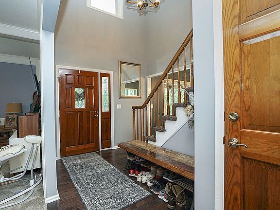 Updated, Beautiful Open Floor Plan in Carriage Crossing! *Major main floor renovation included: Dark hardwoods, white cabinets, carpet, fixtures, faucets, crown molding, stamped ceilings, Mud Room. *Newer Stair Carpet, updated Master Bath-mirrors, counter tops, sinks, fixtures, toilet. Renovated baths (2019) w/tile floors, tile showers, counter tops, fixtures, stamped ceilings, vanity doors & drawers. Partially finished walkout basement, w/new windows, exterior door. New basement & guest bedroom carpet Laundry Hookups on Main (electric) basement (gas). Stubbed for 4-piece bath in basement. Newer windows. Hardie Board on front. Insulation added when basement was partially finished. Neighborhood pool Buyers agent 2% offered. Please email first to contact.