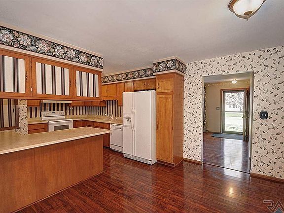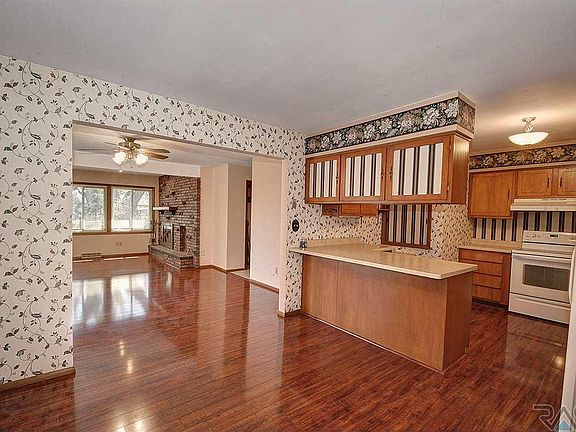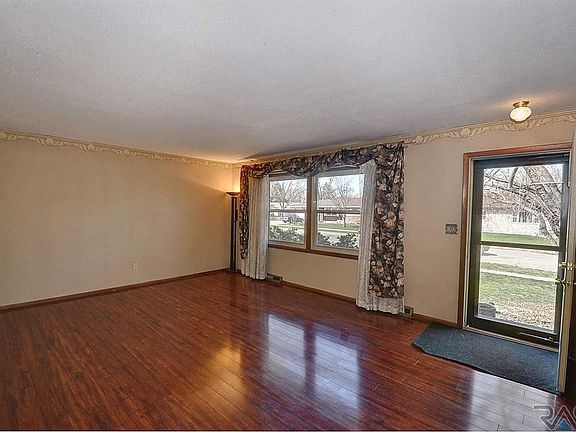 Spacious 3+ bed (extra 2 potential beds in lower), 3 bath Ranch home packed with 2600+ sq ft of VALUE, located in popular SW Sioux Falls. Main level features beautiful dark laminate wood floors plus 2 separate living rooms - the perfect opportunity to create space and function customized to your family. Eat-in kitchen offers TONS of cabinet space, breakfast bar for additional seating plus generous dining area with convenient slider to the oversized patio. Enjoy the wood burning fireplace and picture windows in the second living room overlooking the established, private backyard. Family friendly 3 beds on the same level. Lower level offers a HUGE family room with built in bookcase, two non-legal bedrooms and oversized utility room with workbench plus updated Lennox furnace. Mature trees and nice landscaping surround the exterior of this home. New roof 2009. Close to everything - interstates, shopping, dining - you name it! Don't miss your chance to call this home!