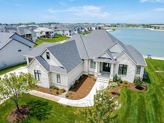 This gorgeous, lakefront home is an unbelievable opportunity in The Reserve at Sandcrest. Exceptionally built by Nies Homes and professionally designed and decorated throughout, you will find upgrades in every aspect of this home. To mention a few; faux painting, commercial grade appliances, barrel ceiling, custom lighting, motorized blinds, surround sound throughout, plantation shutters, densified garage floor, new beach, firepit and much more! This lifestyle community encompasses everything from lake living, to community pools, boating lake with private docks, clubhouse and beachside fire pit, playground, sports field, pickle ball and basketball court.