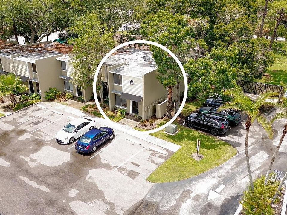 One or more photo(s) has been virtually staged. GREAT INVESTMENT OPPORTUNITY! This meticulously maintained and beautifully updated townhouse in the quiet community of Grand Oaks, offers you a light bright and open floor plan with a covered lanai and a fully fenced and beautiful paved backyard. The well kept community offers you a tranquil surrounding of mature trees and landscaping, a heated pool, fitness center, car care center, and fenced-in dog park. The entrance to Grand Oaks is secure with a newly installed electronic gate and cameras to ensure your safety. The townhome is a 2 story unit with 2 Bedrooms and 1 Bathrooms on the second living level and living, half bath, dining, and kitchen on the first. The solid concrete construction and private backyard fence provide a sense of privacy and security. This truly lives like a single-family home with no one above or below you. The recent building upgrades include painting and landscaping with warming curb appeal. The recent interior upgrades include vinyl flooring, Fresh paint and baseboards, garbage disposal and Dishwasher. The association is very well managed by board members who live on-site and maintain a clean and quiet community. Owners are allowed 2 small pets. Rentals are allowed and there is no restriction to years of ownership. Start renting right away! Centrally located, this condo offers closes proximity to public transportation, schools, shopping centers, and sandy Gulf beaches.