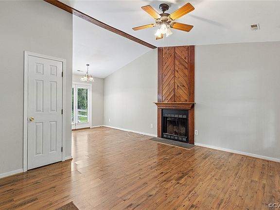 - Description: Vaulted ceiling w/ wood beam, wood burning FP